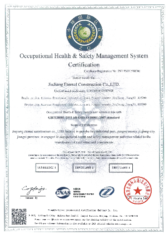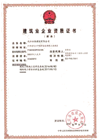 九江永恒建設有限公司 坐落于九江彭湖灣工業園區。緊鄰彭湖高速、長江,交通十分便利。公司成立于2013年11月,占地面積66000平方米,廠房面積40000平方米,公司注冊資金5000萬元。是主要從事鋼結構建筑設計、制作、安裝、重型鋼結構件加工、新型建筑材料生產的大型鋼結構企業。